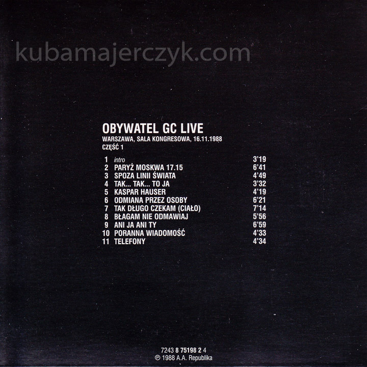 Obywatel GC „Obywatel GC Live” (jako element wydawnictwa „Grzegorz Ciechowski – Kolekcja”) Pomaton EMI 2004